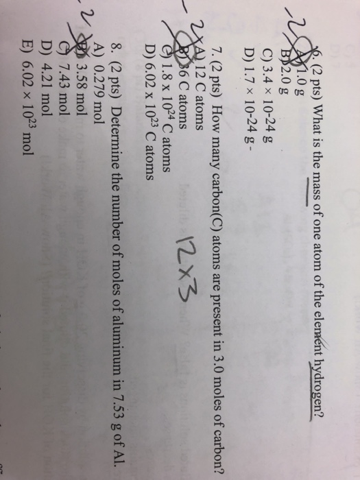 Number of atoms in a sample: The block is cooled and weighed and found to have a mass of 11.6471 g. Atomic mass of al = 26.982 g 1 mol al = 26.982 g al 1 mol al = 6.022 x 10^23 al atoms 3.78 g al x 1 mol al/26.982 g al =.1400933 mol al.1400933 mol al x 6.022 x 10^23 al atoms/1 mol al = 8.44 x 10^22 al atoms. How many moles of gold atoms do $3.45 \times 10^{24}$ gold atoms constitute?… 01:37. 4 moles al = 4×27g = 108g 3 moles o2 = 3×2×16g= 96g=6×6.023×10^23 no.of atoms 2 moles al2o3 = 2(2×27+3×16)= 204g a) 108g al reacts with 6×6.023×10^23 no.of. How many aluminum atoms are in 3.78 g aluminum? And to determine the number of atoms we essentially multiply. Express your answer in grams of platinum. We know that the molar mass of 1 mole of carbon is equal to 12. Suppose you have 10 gram of carbon. What is the mass of 4.91×1021 platinum atoms. 1 see answer coraline5382 is waiting for your help. If the hydrogen gas is produced by the reaction of aluminum with hydrochloric acid: